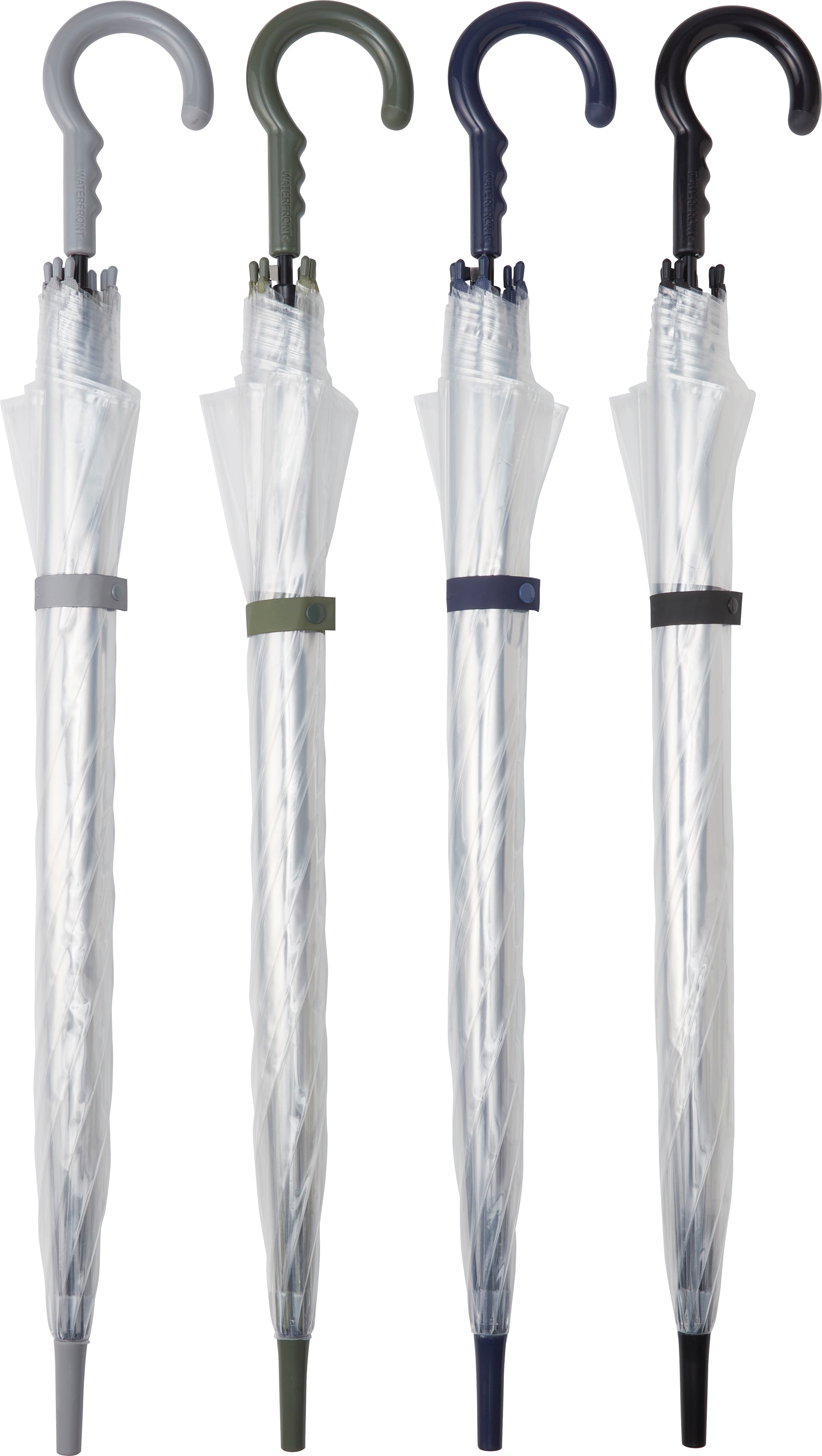 グリップと親骨が性別問わず使えるデザインにカラーリングされたビニール傘。